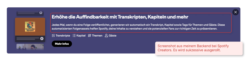 Spotify transkribiert jetzt automatisch. Apple Podcasts macht das schon eine Weile. Die Plattform **verschlagwortet** deine Episoden und **KI-Tools durchsuchen** Inhalte. Aber nur, wenn du **schon in der Planung** darauf achtest, wird dein Podcast auch **empfohlen**.